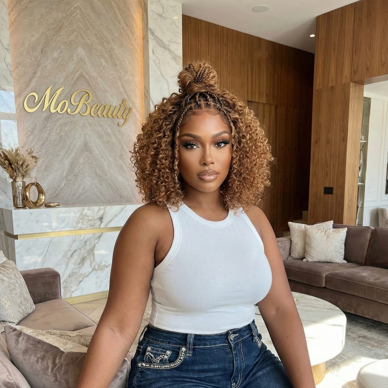 16" Honey Brown Pixie Curl HD Lace Front Wig – 100% Human Hair